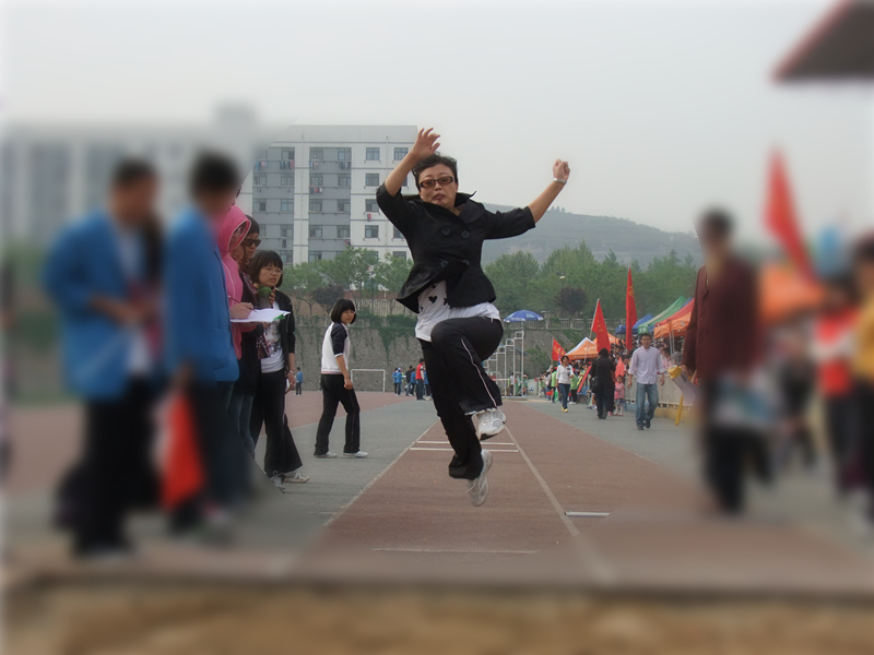 李彩虹老师跳远时的精彩瞬间