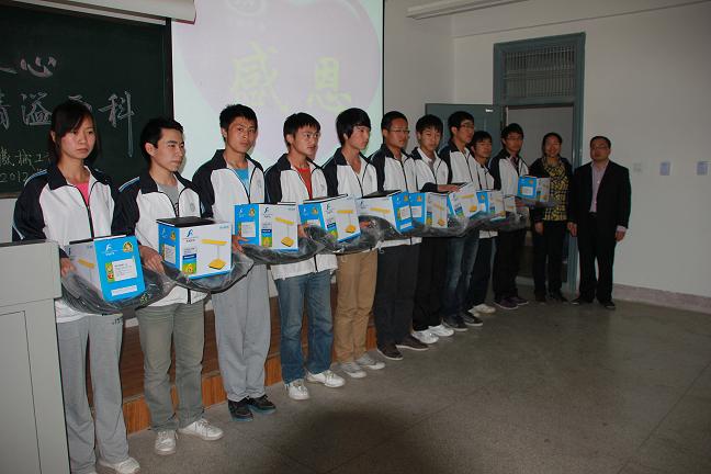 活动中,芮智刚老师介绍了此次活动的背景及内容。接着,汪副书记与田园主任为家庭经济困难学生代表赠送爱心纪念品。受助学生代表张娜发了言。田园老师代表资助中心讲了话,她分析了高校学生资助工作的重要性,同时总结了目前学生资助工作的现状。