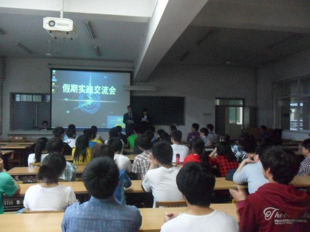4月26日晚,滚球官网在3教409室举行假期实践交流会决赛,团委书记陈霂老师、辅导员程鹏老师与学生会干部出席交流会并参与评分。