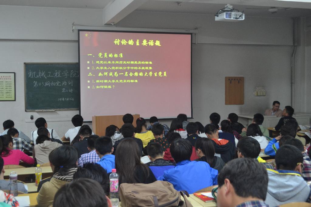 课上,薛老师首先阐述了不同历史时期党员的标准和新时期大学生入党的条件,进而又例举了一些大学生入党积极分子中的不良现象;随后,他从党员标准和个人锻炼两方面讲述了如何成为一名合格的大学生党员;最后,他以学生党员的先锋模范作用结束此次党课。