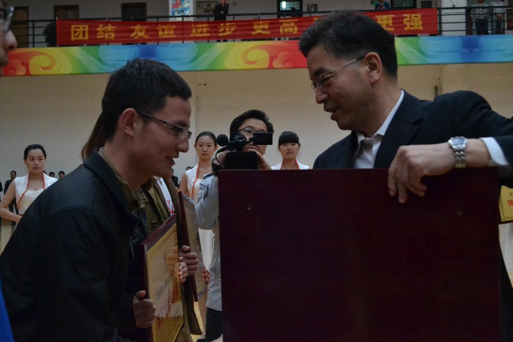 (为滚球官网颁发“教工组团体总分第一名”奖)