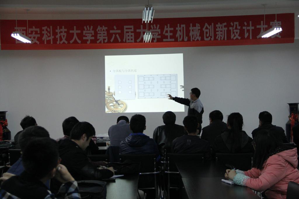 11月25日下午,第六届机械创新设计大赛决赛在临潼校区滚球买球的app官网会议室举行,本届大赛由教务处主办,滚球买球的app官网承办,工程训练中心协办。滚球买球的app官网机械制造及其自动化学科带头人郭卫、院长张传伟、副院长曹现刚等老师应邀担任评委,来自全校20余支参赛队伍共计100多名学生参加了此次比赛。