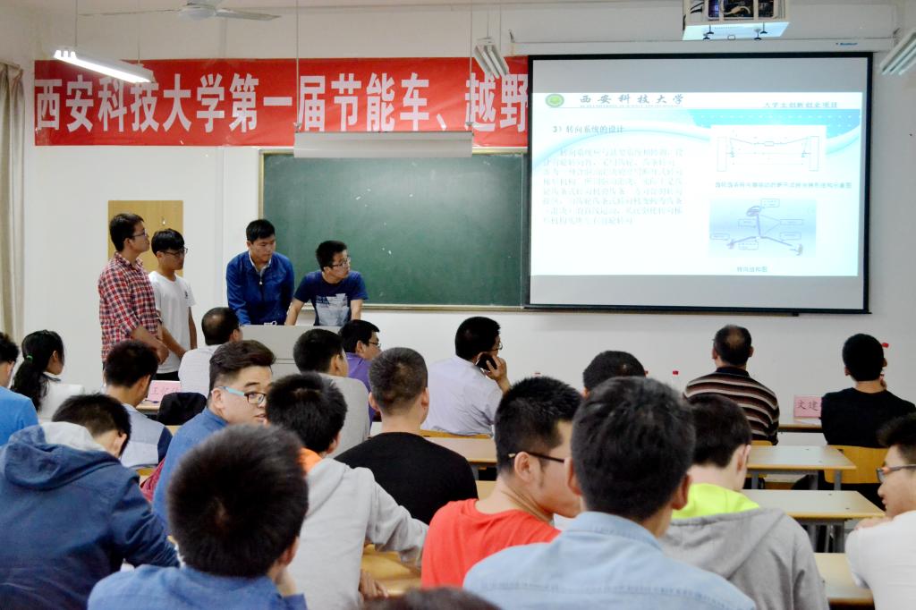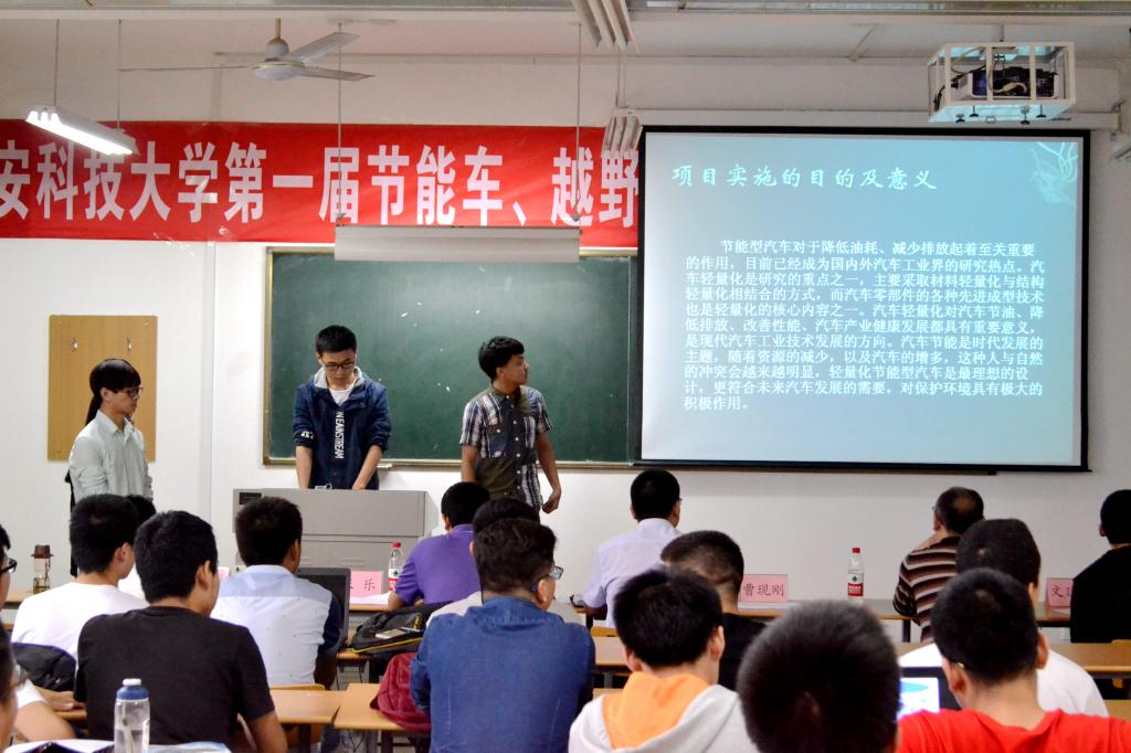 6月1日,由教务处主办、滚球买球的app官网承办的滚球买球的app官网第一届越野车、节能车创意竞赛决赛在临潼校区举行。经过预赛初评、来自滚球买球的app官网、能源学院、测绘学院、管理学院、艺术学院的17件参赛作品最终进入决赛。决赛分PPT讲解和问辩两个环节,经过学生讲述、评委问辩,最终评出越野车竞赛一等奖2项、二等奖2项、三等奖3项,节能车竞赛一等奖2项、二等奖4项、三等奖4项。竞赛组委会将根据本次竞赛结果选拔出优秀作品代表参加7月份在成都举行的2016中国汽车工程学会巴哈大赛和10月份在广州举行的第10届Honda中国节能竞技大赛。