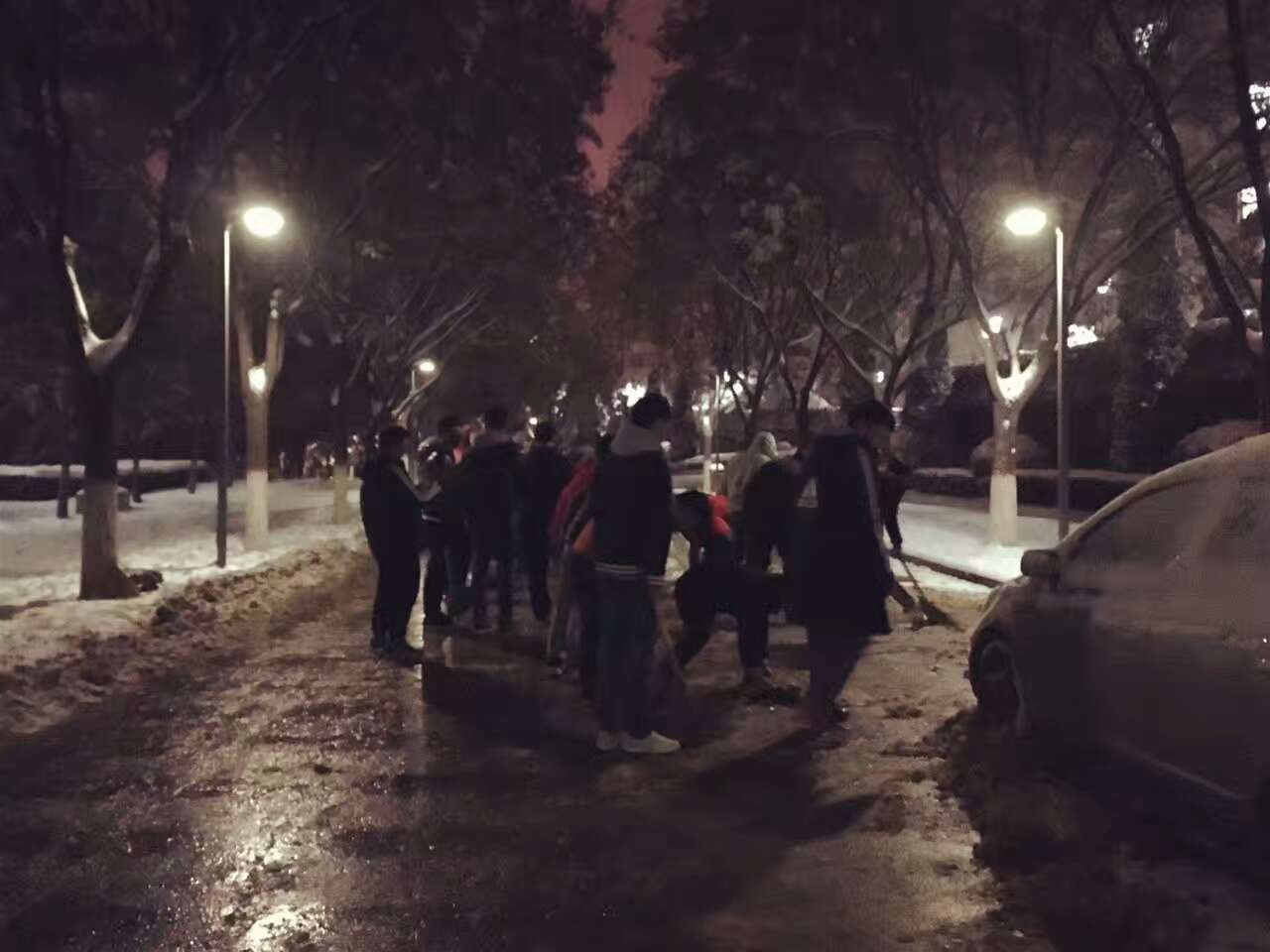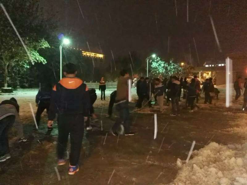 为保证广大师生的出行安全,滚球买球的app官网学工部于2016年11月22日晚19时30分在临潼校区组织义务扫雪活动。滚球买球的app官网吕叻加老师带领2014级40多名同学参加此次扫雪活动。