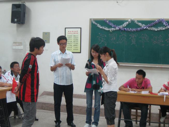 10月5号,闯过预赛的09级车辆和工业代表队,08级车辆和机电代表队,07级工业和机设1、2班代表队。参加了在3教学楼314举行的决赛。滚球买球的app官网团委书记陈霂和辅导员张耿、张立显观看了决赛。此次决赛竞答题的内容主要与建国60周年以来我国的历史、经济发展有关。题目类型也非常有趣,包括必答选择题、抽签题、填空题、简述题。比赛中同学们积极竞答,展现出自己丰厚的知识底蕴,同时队内互相帮助,团队合作默契。最后,经过激烈的“战斗”车辆08级的同学获得冠军。