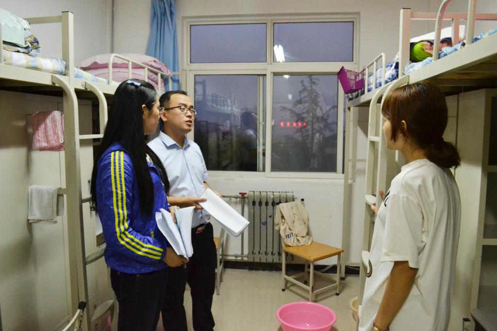 在2个多小时的走访过程中,两位辅导员老师详细了解了同学们初次来到大学对宿舍设施、生活环境的意见,并进行了卫生检查和安全隐患排查工作。在交谈中,芮老师亲切询问同学们来自哪里,食堂口味是否可口,并就宿舍安全、宿舍卫生等问题与同学们进行了交流。
