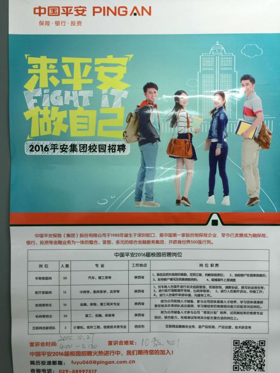 10月27日,平安产险陕西分公司在滚球官网501教室进行专场招聘会,招聘会于当天16:00-17:30进行。从10月中旬开始平安产险陕西分公司便与滚球官网取得联系,表达欲招聘滚球官网毕业生的意愿,经过多次协商和前期宣传,最终确定整个招聘环节。在招聘会现场,毕业生们积极踊跃参与各个互动环节,并通过现场投递简历和初步面试确定了部分招聘对象。
