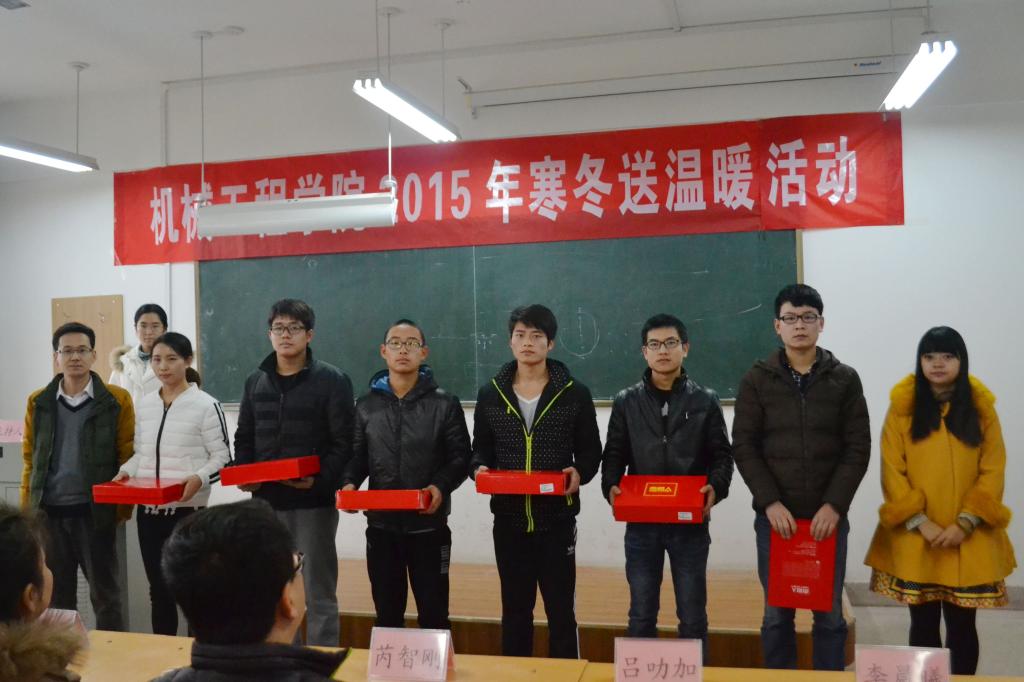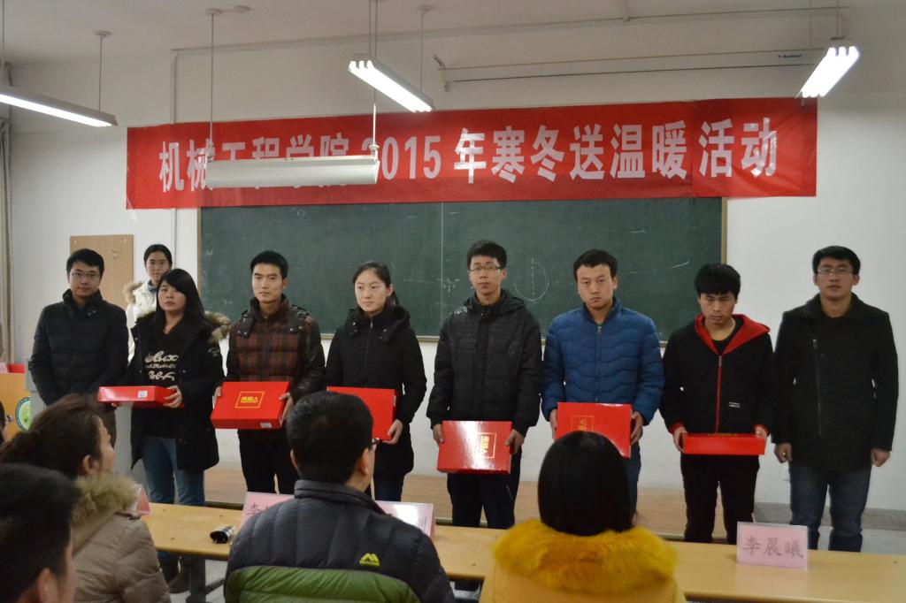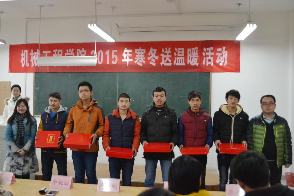 在活动的开始,刘烨做了开场陈词,讲述了滚球买球的app官网“寒冬送温暖”活动的由来和本次活动的目的:学院始终在关注着家庭困难的同学,希望给与他们帮助与鼓励。特借此时机,向家庭困难同学送去冬日中的温暖——一套保暖内衣。接着,诸位与会老师向家庭困难学生代表分发了保暖内衣并合影留念,受助学生代表周驰发言,向学院表达了感谢,并且表示会更加认真的学习。最后,校资助中心主任尹弘及学院党委副书记李婉丽分别作了讲话,强调受助同学应更加努力学习回报家长、回报学校、回报社会,不辜负自己的大学,不辜负自己的青春。
