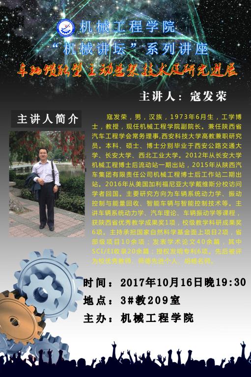 10月16日晚,在临潼校区3教209教室,滚球买球的app官网举办“机械讲坛”第四讲,报告会由2015级辅导员芮智刚主持,2015级车辆工程专业全体本科生,其他年级学生代表一百余人参加了讲座。