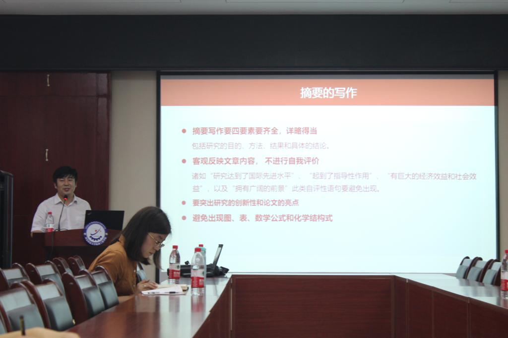 毕永华对《煤炭学报》近年的发展情况和论文撰写与投稿的流程进行了具体讲解,从《煤炭学报》基本情况、稿件处理流程、科技论文撰写、投稿注意事项等四个部分展开。详尽解释了《煤炭学报》的刊登范围、Scopus数据库期刊引证指标、历年获奖等方面对学报的基本情况进行了介绍,使同学们对《煤炭学报》有了进一步的认识和了解;介绍了论文从投稿到出版发行的整个流程,使作者对稿件的处理过程有一个清晰的认识;他从审稿人的角度出发,为大家详细讲述了论文的撰写过程,并通过列举写作实例使讲解更加生动易懂;还讲解了作者如何投稿、如何对待编辑部的修改意见等,同时提醒大家严禁学术不端行为。随后,同行的张扬老师作了题为《<煤炭学报><煤炭科学技术>在数字出版环境下的新型服务模式》的学术报告,获得了参会的期刊中心编辑们一致好评,纷纷表示颇受启发。