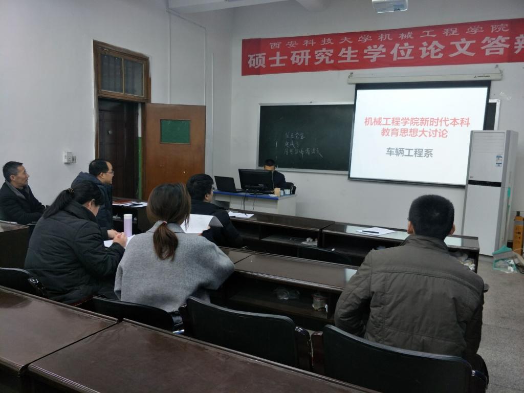 为进一步转变办学理念,凝聚发展共识,努力推动系(教研室)各项工作有序开展,2019年1月3日,车辆工程系在雁塔校区滚球买球的app官网三楼303教室召开车辆工程新工科专业建设系暨新时代本科教育思想大讨论。会议由高怀斌老师主持,全系教职工参加了会议。
