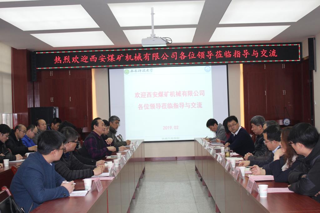 2月18日下午,西安煤矿机械有限公司总经理杨会武、总工程师赵友军等一行5人来学院交流,副校长来兴平、滚球买球的app官网院长张旭辉、副院长寇发荣、机械电子工程学科带头人马宏伟教授、魏娟教授、方秀荣副教授、薛旭升博士、樊红卫博士等师生参加了座谈会,双方重点就“煤矿快速掘进技术”进行了深入交流。会议由院长张旭辉主持。