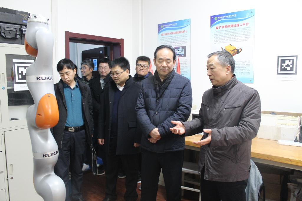 会后,杨会武一行参观了学院“陕西省矿山机电装备智能监测重点实验室”,对学院在煤矿智能机器人、自动化远程控制、无损检测技术等科研能力表示了肯定,并表达了尽快布局下一步科研合作的强烈意愿。