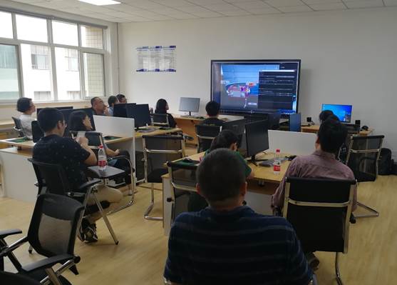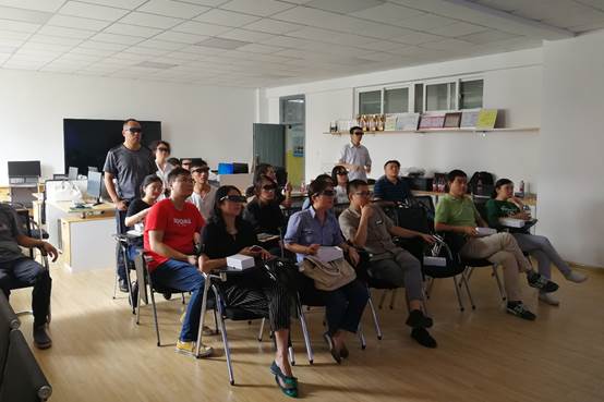 会议还邀请到济南科明数码技术股份有限公司工程师就VR课程资源、VR电子黑板、快速开发平台等虚拟现实教育资源的使用做了详细培训。培训现场气氛热烈,参会教师们都纷纷进行了操作体验,还结合课程的教学内容及特点对虚拟仿真资源的开发提出了良好建议和意见。