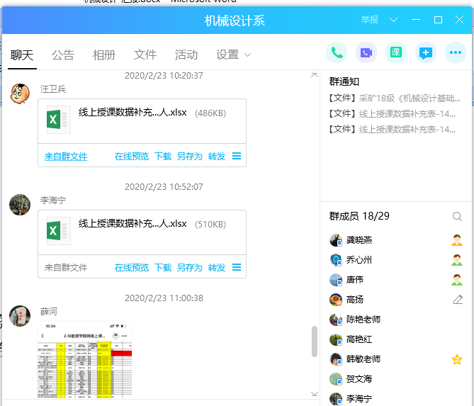 2019-2020学年第二学期机械设计系从第一周起共有15位老师进行网络教学,承担滚球买球的app官网《机械原理》、《流体力学与液压传动》、《计算方法》等专业课的教学任务,同时承担外学院《机械设计基础》、《采掘机械与设备》等课程。