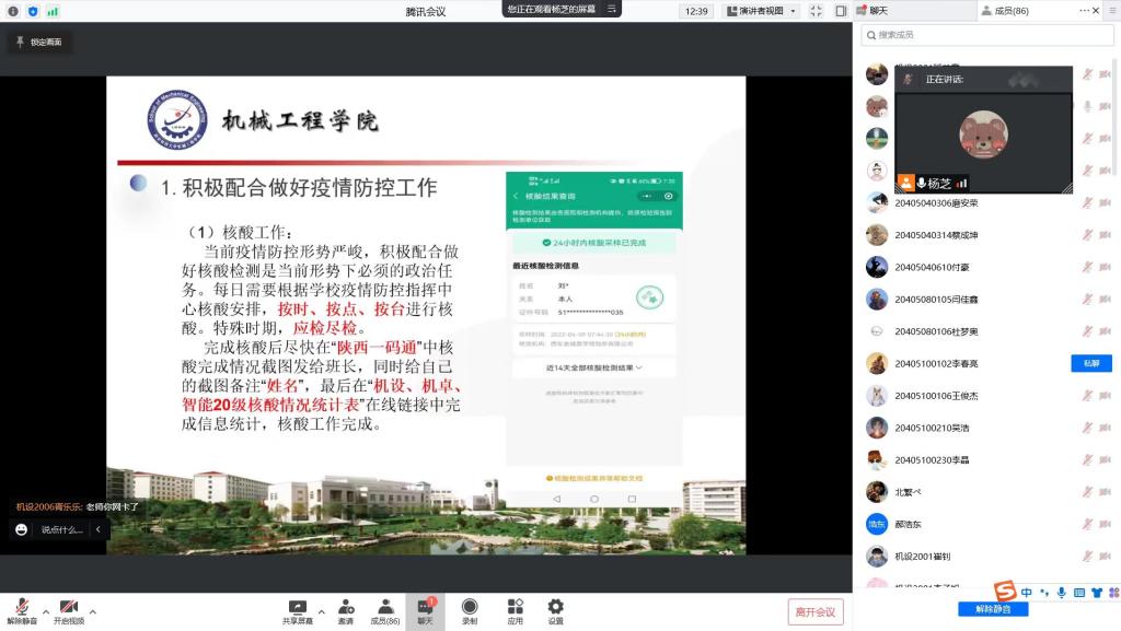 会上,各年级辅导员对奥密克戎病毒引发国内新一轮疫情以及西安本轮疫情传播链等信息做了通报。通过向学生进行“动态清零”“社会面清零”等词语解读,帮助大家充分了解当前我国新冠肺炎疫情防控的总方针;学习了“陕西省卫健委提示:无故不参加统一组织的核酸检测会违法”等案例,帮助学生进一步掌握疫情防控中可能出现的违法违规行为及可能产生的法律后果,引导学生自觉遵守《滚球买球的app官网新冠疫情防控期间学生管理暂行规定》有关要求,依法依规做好核酸检测等工作,积极推动校园疫情防控工作高效进行。