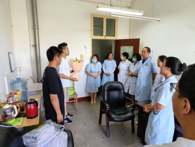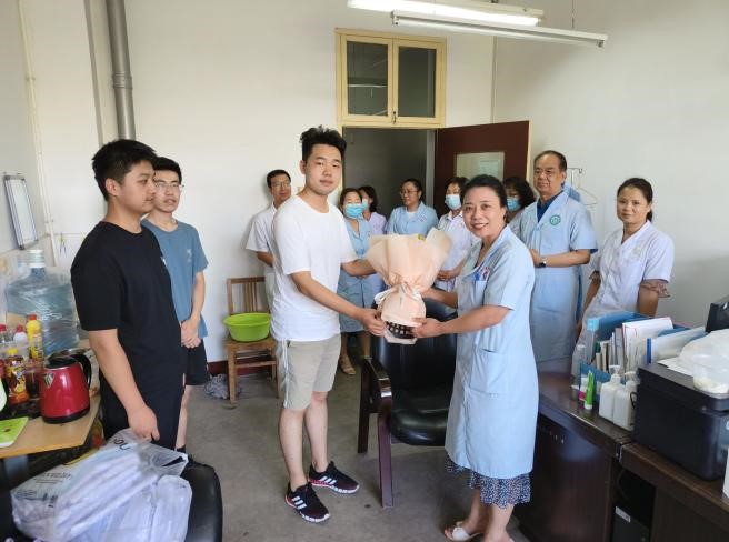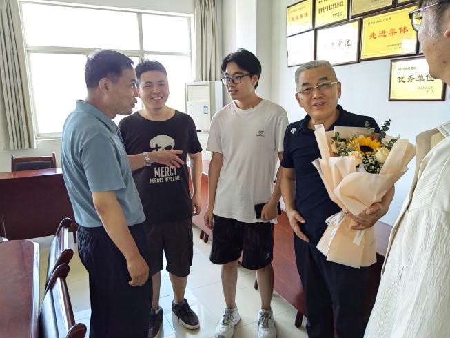 6月28日下午,滚球买球的app官网学生党员、学生干部、省级优秀毕业生付浩然、洪华君、崔文达等20余名毕业生手捧鲜花分组看望学校后勤处、校医院、保卫处、9号学生公寓以及5号学生公寓,表达机械学子的感恩之心。