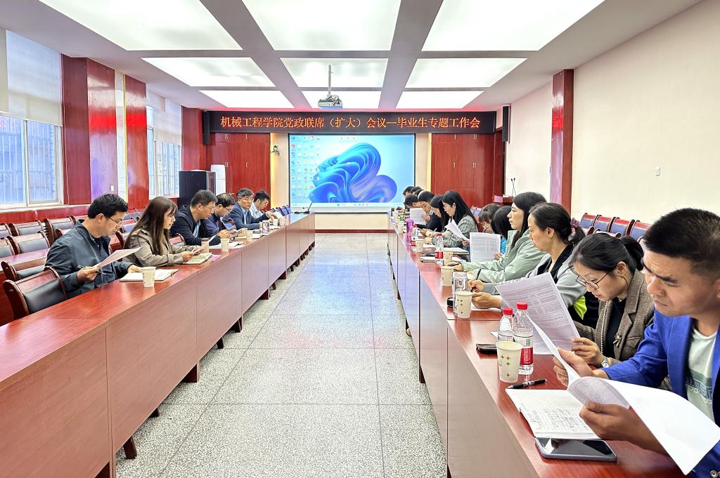 院长曹现刚解读了《机械工程学院2024届就业及学业深造指导工作方案》有关内容,并结合学院毕业生工作中存在的问题与不足,号召大家要进一步认清形势,高度重视毕业生工作;要聚焦人才培养核心任务,加强组织领导,健全工作机制,充分调动各方工作积极性,不断推进全员参与就业工作的组织和动员,并就科学有效做好各系教师动员、学生动员、用人单位动员等工作提出了具体要求。学院党委书记郭小平通报了学校9月25日就业工作推进会会议精神,并结合学院实际,就2024届毕业生就业工作提出三点要求:一是要提高认识,统一思想,科学统筹;二是要认真梳理,多措并举,扎实推进;三是要加强协作,精准施策,力求实效。