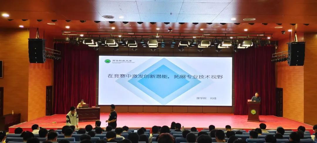 为持续深入开展学习贯彻习近平新时代中国特色社会主义思想主题教育,全面落实党的二十大精神和“立德树人”根本任务。10月24日晚,滚球买球的app官网邀请理学院刘佳副教授为23级新生做题为《在竞赛中激发创新潜能,拓展专业技术视野》报告。校党委副书记陈春林,学院学生工作负责人、22级辅导员,23级全体学生及22级部分学生共500余人参加报告会。23级辅导员主持报告会。