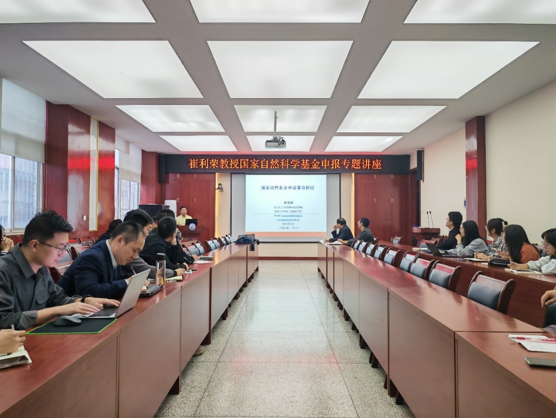会上,崔利荣教授介绍了国家自然科学基金的申报和评审流程以及近些年出现的最新变化,从立项依据、研究内容、关键科学问题、研究目标、技术路线、研究方案、研究基础与工作条件等七个方面详细分享了关于国家自然基金项目申报的宝贵经验。重点讲述了如何提高申请书质量,指出创新性是基金的核心,并与参会人员进行了互动交流,对参会教师在基金申报过程中存在的疑惑进行了解答和讨论,参会教师表示受益匪浅,现场学习氛围浓厚。