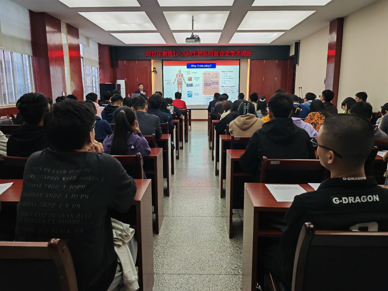 报告中,张来昌教授介绍了近几年3D打印技术制造复杂形状构件的前沿热点、激光熔化制造低廉商用Ti-35Nb生物医用金属材料的创新设计,详细阐述了粉末特性对选区激光熔化制造的Ti-35Nb钛合金的加工、组织均匀性及机械与腐蚀性能的影响。报告结束后,张来昌还从金属原料Ti-35Nb的选用、性能研究及加工技术等方面同与会师生进行了深入的交流和探讨。此次报告内容拓宽了师生的视野,也使得老师与同学们对3D打印制造技术产生了新的思考与认识,扩展了3D打印制造技术的应用思路,师生们表示受益匪浅。
