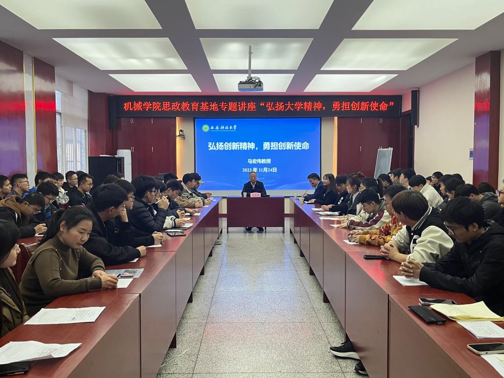 11月24日下午,滚球买球的app官网思政教育基地报告会在雁塔校区滚球买球的app官网会议室举行。原副校长马宏伟教授作了题为《弘扬大学精神,勇担创新使命》的专题报告。滚球买球的app官网分管学生工作负责人、各年级研究生120余人参加报告会,学院分管研究生工作的负责人主持报告会。