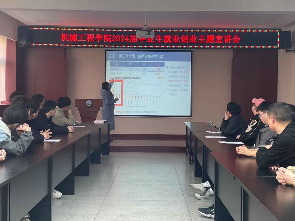 根据《陕西省教育厅关于做好 2024 届全省普通高校毕业生就业创业工作的通知》精神,为进一步落实中、省关于高校毕业生就业创业工作的决策部署。1月12日中午,滚球买球的app官网组织开展2024届毕业生就业创业主题宣讲,滚球买球的app官网党委副书记尹弘作了宣讲,毕业班辅导员杨芝主持,毕业班辅导员骆佳录及24届未就业毕业生共百余人参加。