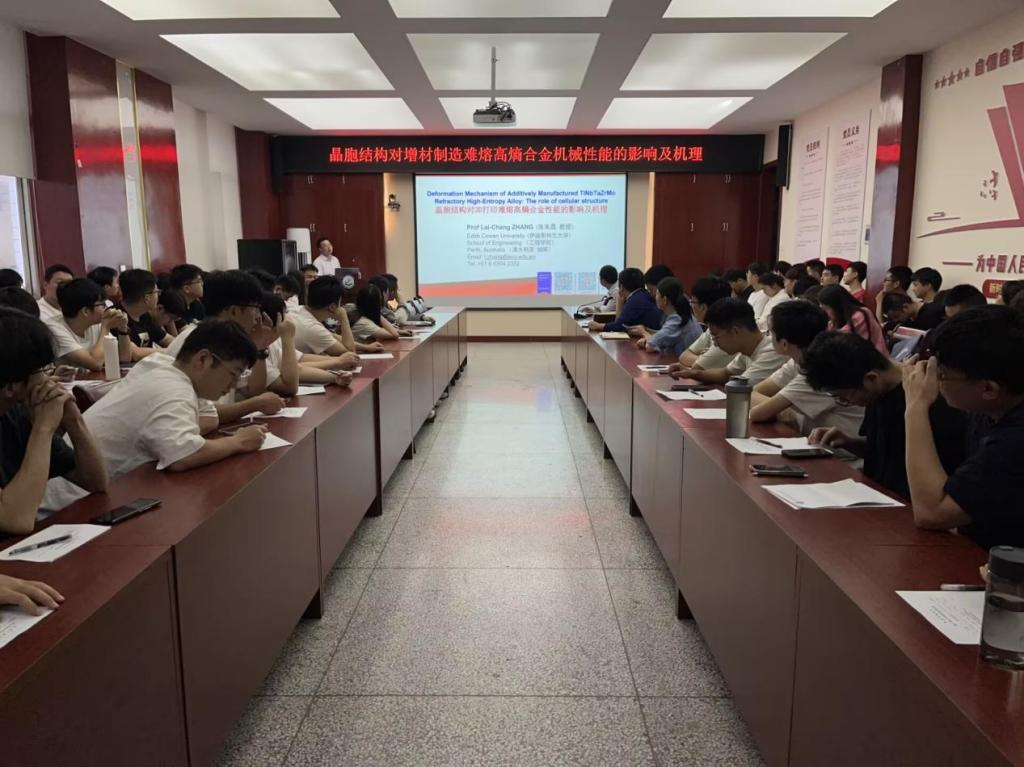 9月27日上午,澳大利亚伊迪斯科文大学张来昌教授在滚球买球的app官网雁塔校区210会议室为学院师生作了题为《晶胞结构对增材制造难熔高熵合金机械性能的影响及机理》的学术报告,滚球买球的app官网院长曹现刚、副院长毛清华和学院相关研究方向教师及研究生100余人聆听了报告,报告会由副院长毛清华主持。