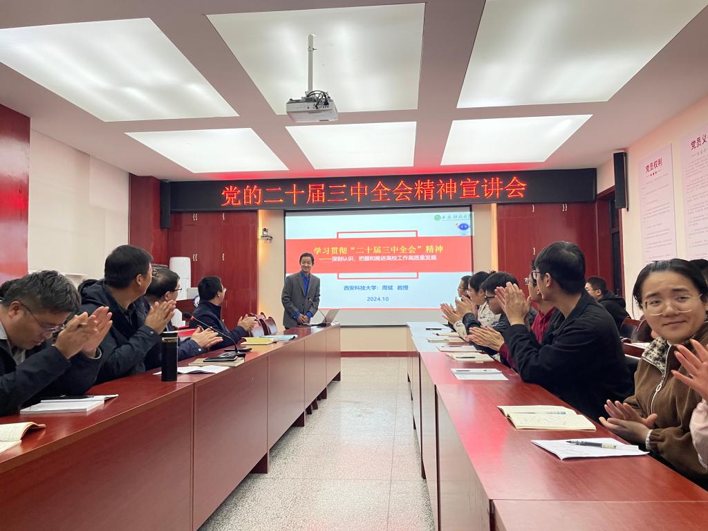 10月29日下午,滚球买球的app官网在雁塔校区召开学习贯彻党的二十届三中全会精神的宣讲报告会,特邀宣讲团成员、马克思主义学院周斌教授做宣讲报告。学院全体党委理论学习中心组成员及师生代表80余人参加。报告会由学院党委书记郭小平主持。