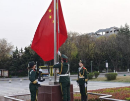 晨过熹微,国旗护卫队迈着整齐的步伐出现在广场,随着庄严的《义勇军进行曲》响起,全体师生行注目礼,国旗在晨光中缓缓升起,现场氛围肃静庄严。
