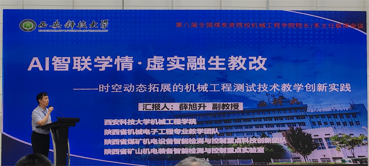 会议聚焦“新工科背景下机械工程学科高质量发展与教学创新实践”主题,通过主旨报告、专题研讨、教学竞赛等形式展开交流。滚球买球的app官网机电工程系主任薛旭升副教授在大会上作了题为“AI智联学情·虚实融生教改——时空动态拓展的机械工程测试技术教学创新实践”专题报告。报告从人工智能技术赋能教学改革、虚实融合教学模式构建、学情动态分析与课程时空拓展等维度,系统展示了滚球买球的app官网在机械工程测试技术课程中的创新探索与实践成效,同与会学者开展了热烈讨论。