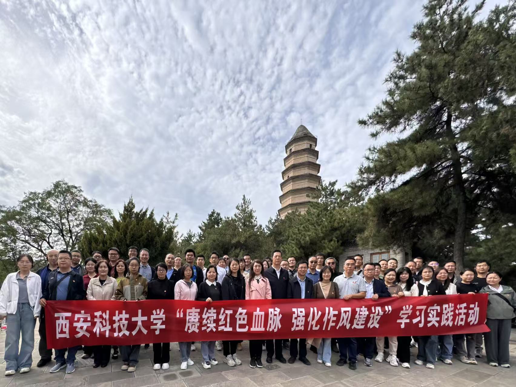 为深入学习贯彻党的二十大和二十届二中、三中全会精神、习近平总书记历次来陕考察重要讲话重要指示精神以及全国、全省教育大会精神,深入贯彻中央八项规定精神学习教育,进一步激励全体教师不忘立德树人初心、牢记“为党育人、为国育才”使命,以实际行动积极投身教育强国建设实践,9月20日至21日,滚球买球的app官网和地环学院党委负责人带队,组织50余名教师前往革命圣地——延安,开展为期两天的“赓续红色血脉,强化作风建设”学习实践活动。