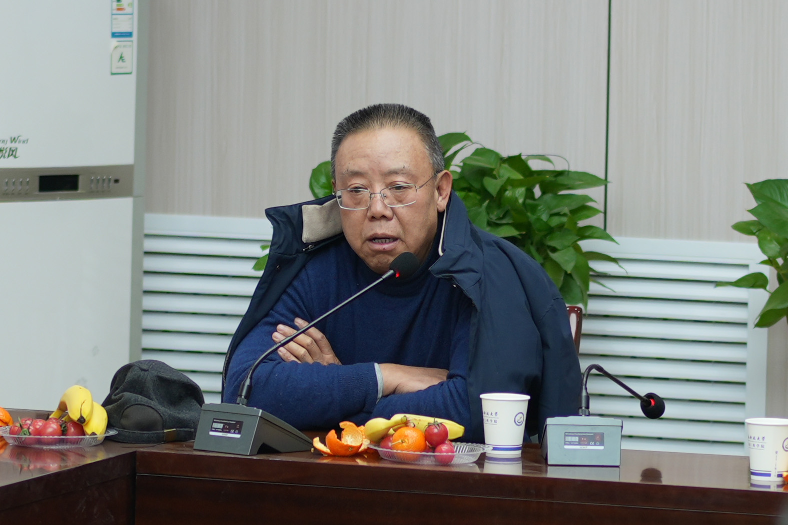 院长曹现刚作年度工作汇报。着重从学科建设、科学研究、师资队伍、人才培养、社会服务等方面,汇报了2025年学院取得的成绩,并简要介绍了学院“十五五”规划编制的初步思路,并就下一步学院发展建设征求了大家的意见和建议。