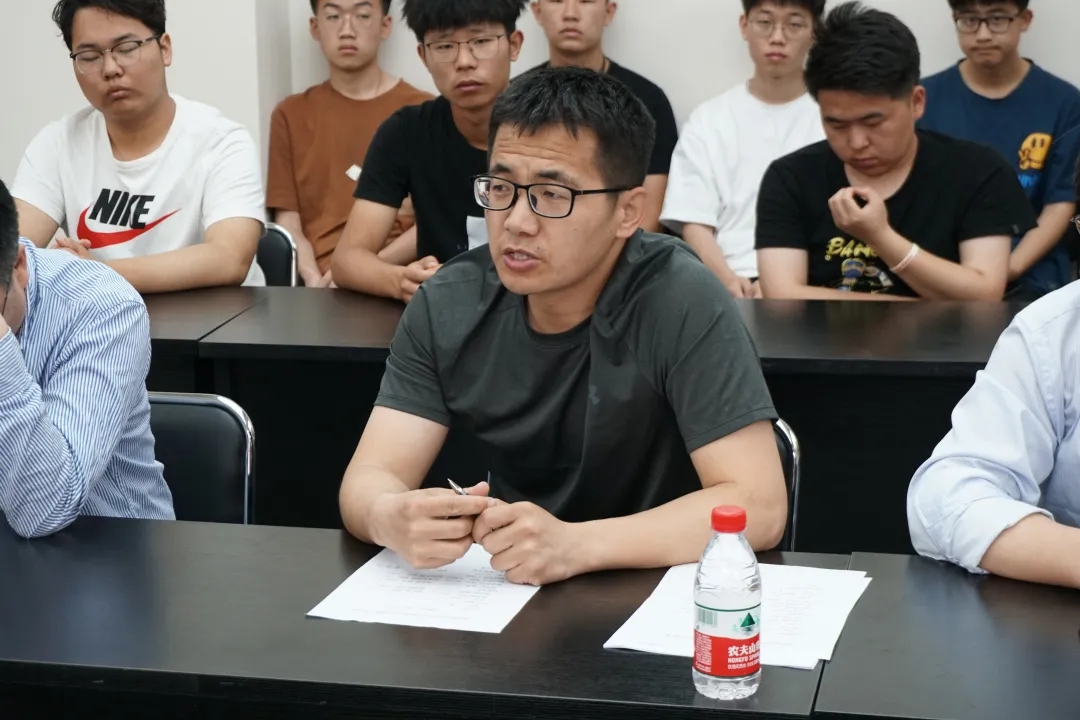 团队前任秘书长张少博同学发言讲到,从大一加入车队以来,车队就像个大家庭,老带新一届一届传承,不光学了很多知识,提高了自己的动手能力,更重要的是加强了同学之间的交流,希望新加入这个大家庭的同学们都能有车队的认同感和归属感,明白自己的责任,一起努力,经营这个家。