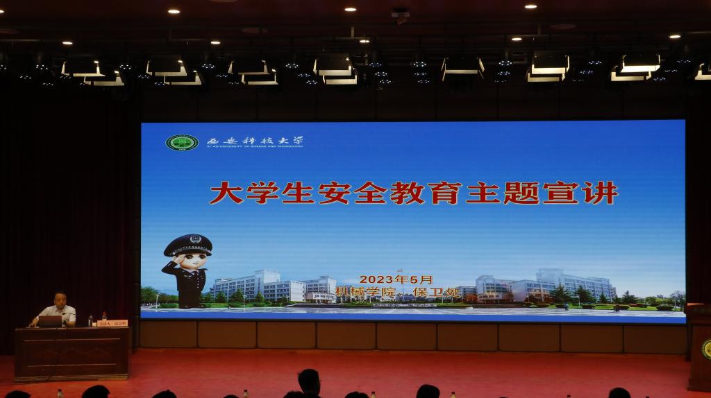 安全教育是大学生活的必修课,是平安校园建设的重要环节。为进一步增强学生安全防范意识,增强学生自我保护能力,5月16日,滚球买球的app官网在骊山校园煤炭科技中心一楼报告厅举办学生安全教育专题报告会。报告会由学校保卫处副处长沈宗华主讲。滚球买球的app官网党委书记郭小平、全体辅导员和各年级学生干部、全体学生宿舍舍长及学生代表等300余人参加了报告会。报告会由机械工程学院党委副书记尹弘主持。