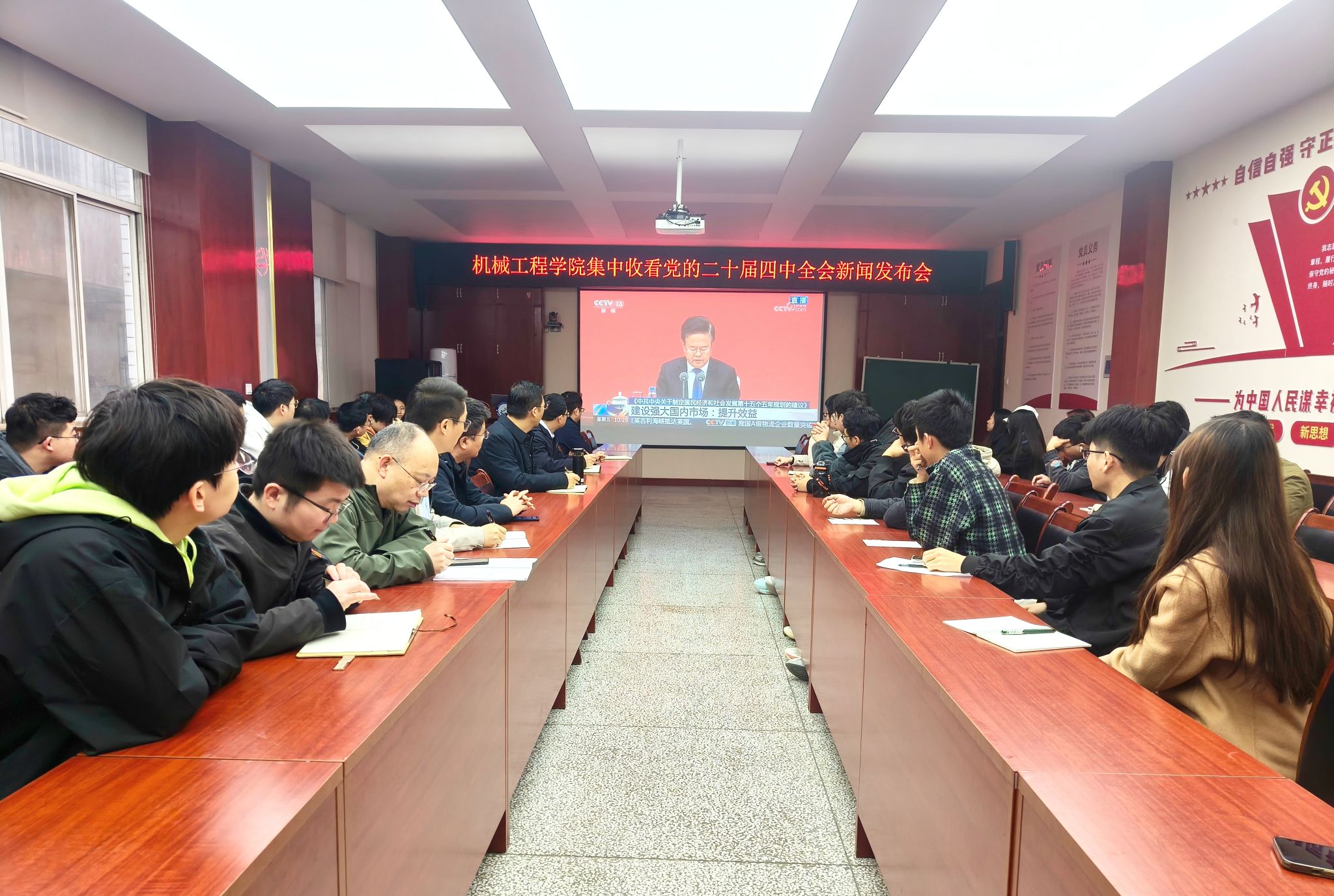 2025年10月24日上午,滚球买球的app官网在雁塔校区北院210会议室组织师生集中收看党的二十届四中全会新闻发布会,认真学习党的二十届四中全会精神。学院班子成员、党支部书记、系主任、教师代表和研究生党员代表80余人共同收看。