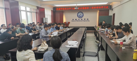 院党委书记张金来宣讲了《党史学习教育宣讲提纲》,强调了在全党开展党史学习教育,是以习近平同志为核心的党中央作出的一项重大决策,是党的政治生活中的一件大事,要把党史学习的实际效果转化为推动教育事业高质量发展的积极实践,做到学史明理、学史增信、学史崇德、学史力行,一是要不断深化学科建设、人才培养、师资队伍建设、科技创新和社会服务、对外交流与合作等认识,二是要坚守教育初心使命,着力培养担当民族复兴大任的时代新人,把服务国家作为最高追求;三是要加强师德师风建设,着力提高教师专业化水平,提升教师思想政治素养,坚定信念,自觉做中国特色社会主义的坚定信仰者和忠实实践者,准确把握习近平总书记重要讲话的精神实质和深刻内涵,知行合一,真正做到学党史、悟思想、办实事、开新局,助推学校“双一流”建设,以优异的工作成绩为党的百年华诞献礼。