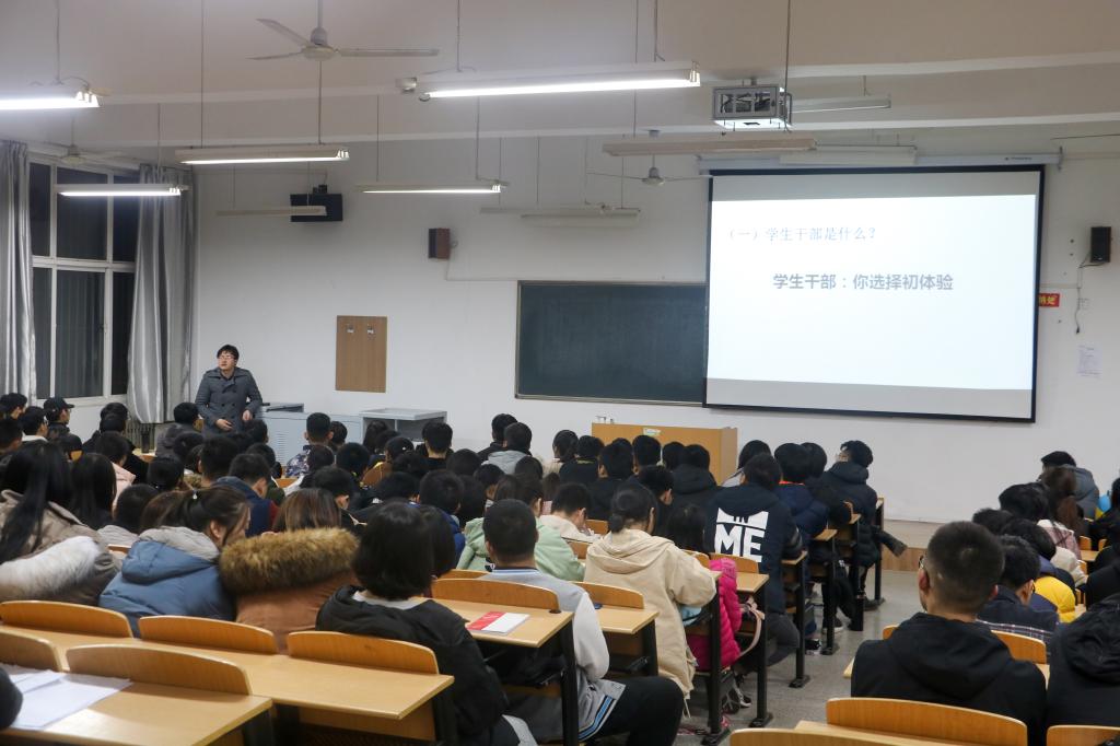 2018年11月19日晚,滚球买球的app官网于九教104教室举行了党员干部培训大会第二讲,滚球买球的app官网团委书记周学刚担任此次会议的主讲人。