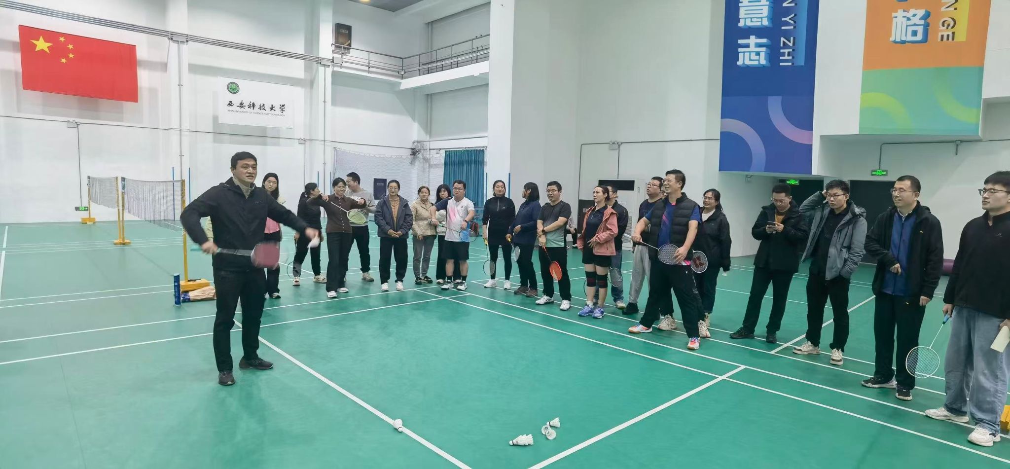 在全国上下深入学贯彻党的二十届四中全会精神之际,2025年10月25日下午,滚球买球的app官网在雁塔校区北院体育馆举办了“凝心聚力,‘羽’你同行”教职工羽毛球比赛。本次活动由滚球买球的app官网工会主办,学院党委书记郭小平、院长曹现刚、副书记尹弘、副院长毛清华、钟斌以及各系部教师代表60余人参加。