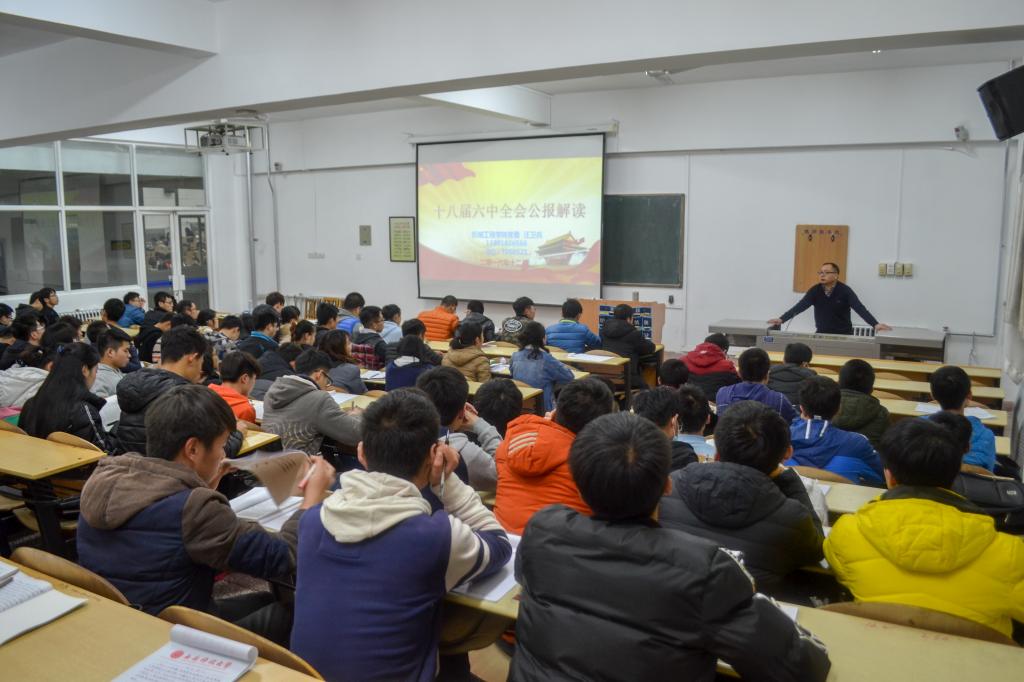 本次培训的主题为“十八届六中全会公报解读”。首先,汪书记从十八届六中全会为全面从严治党做出的重大贡献,《关于新形势下党内政治生活的若干准则》的14个新提法和29个新亮点,《中国共产党党内监督条例》的8个新提法和11个新亮点三个方面对十八届六中全会公报进行了详细解读。随后,汪书记指出,全体入党积极分子要认真学习十八届六中全会内容,深刻领会全会精神,同时,希望广大机械学子能够时刻用党的思想和理论武装自己,用代代相传的机械精神强大自己,用充实圆满的大学生涯提升自己。最后,希望全体初党学员能够严格要求自己,以实际行动向组织靠拢,不断提高党性修养,争取早日加入中国共产党。