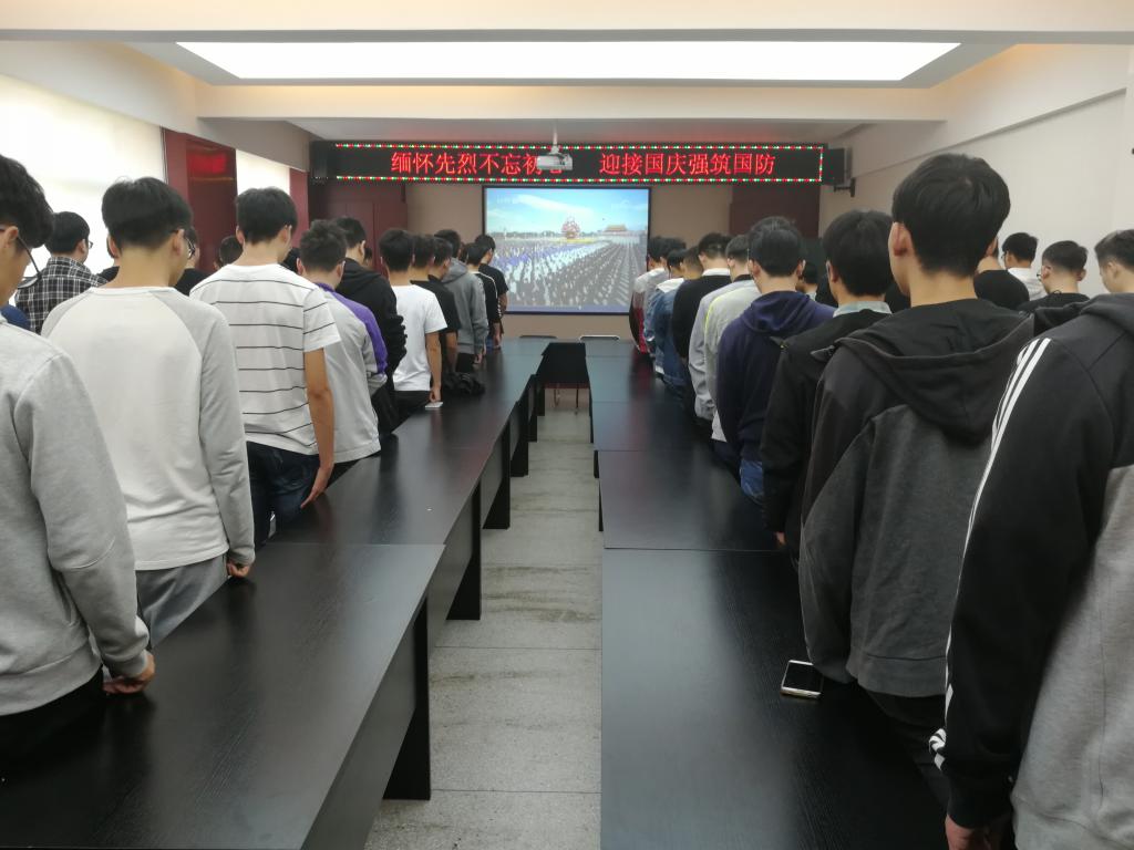 2018年9月29日,在第五个烈士纪念日到来之际,滚球买球的app官网组织师生共同观看向人民英雄敬献花篮仪式。本次活动由李帅田老师主持,深刻缅怀先烈伟绩,汲取信仰力量,激励同学们继承革命先烈优秀品质,坚定弃笔从戎报国理想信念。