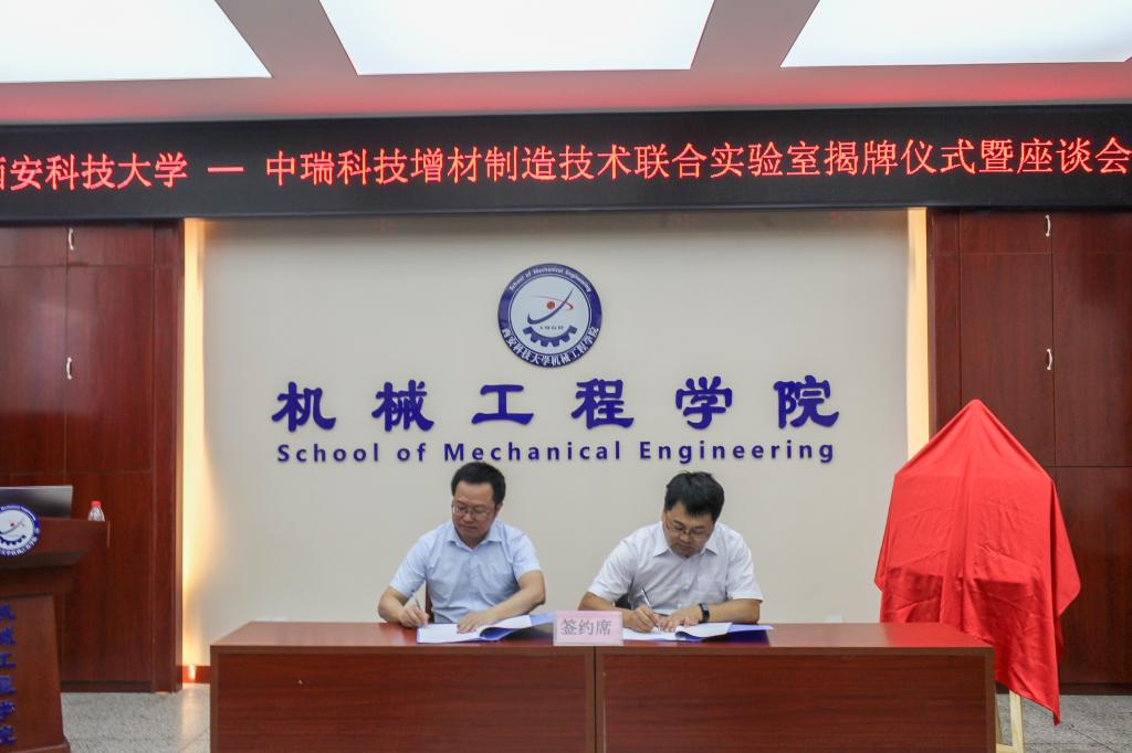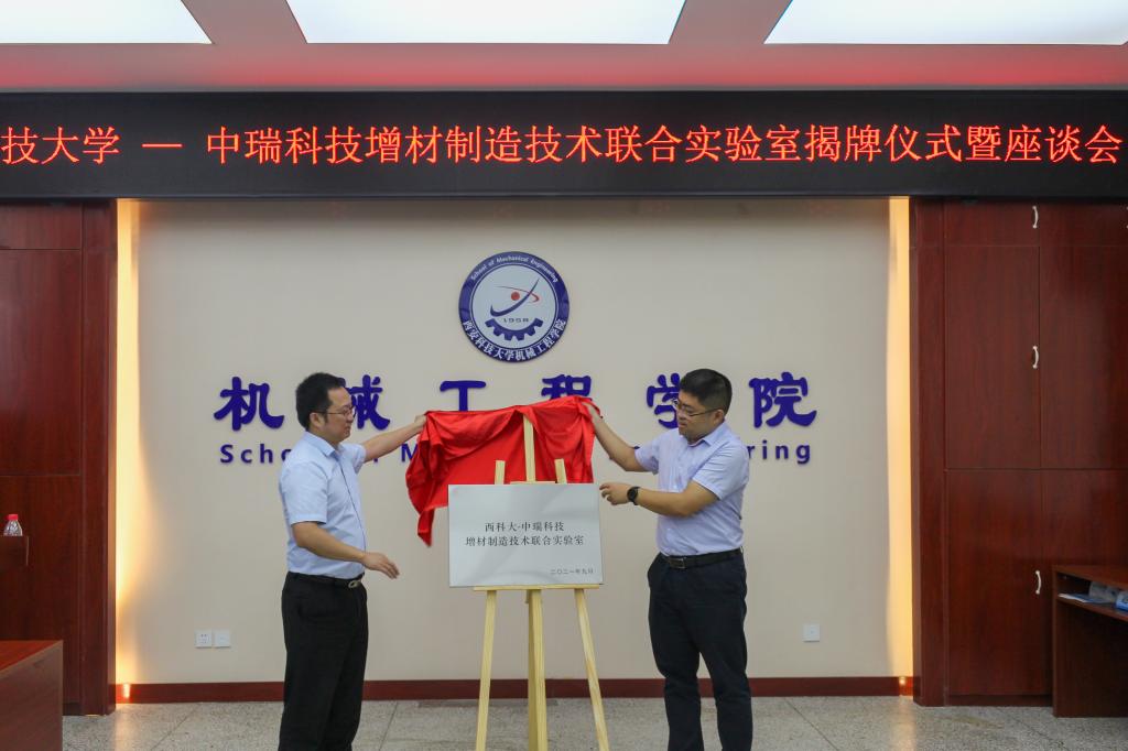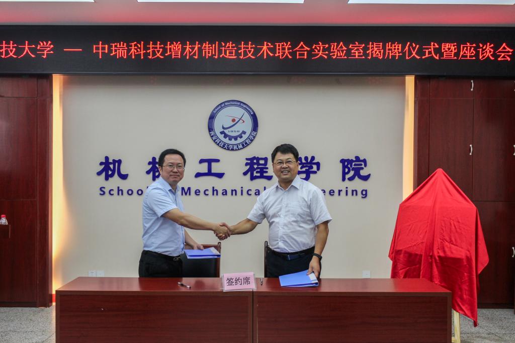 9月14日上午,滚球买球的app官网在雁塔校区北院学院会议室,举行了“西科大-中瑞科技增材制造技术联合实验室”揭牌仪式,苏州中瑞智创三维科技股份有限公司董事长周宏志,校科技处副处长戴开文,滚球买球的app官网党委书记张金来、院长张旭辉、副院长寇发荣,以及机械制造学科专业领域师生30余人参加。会议由副院长寇发荣主持。