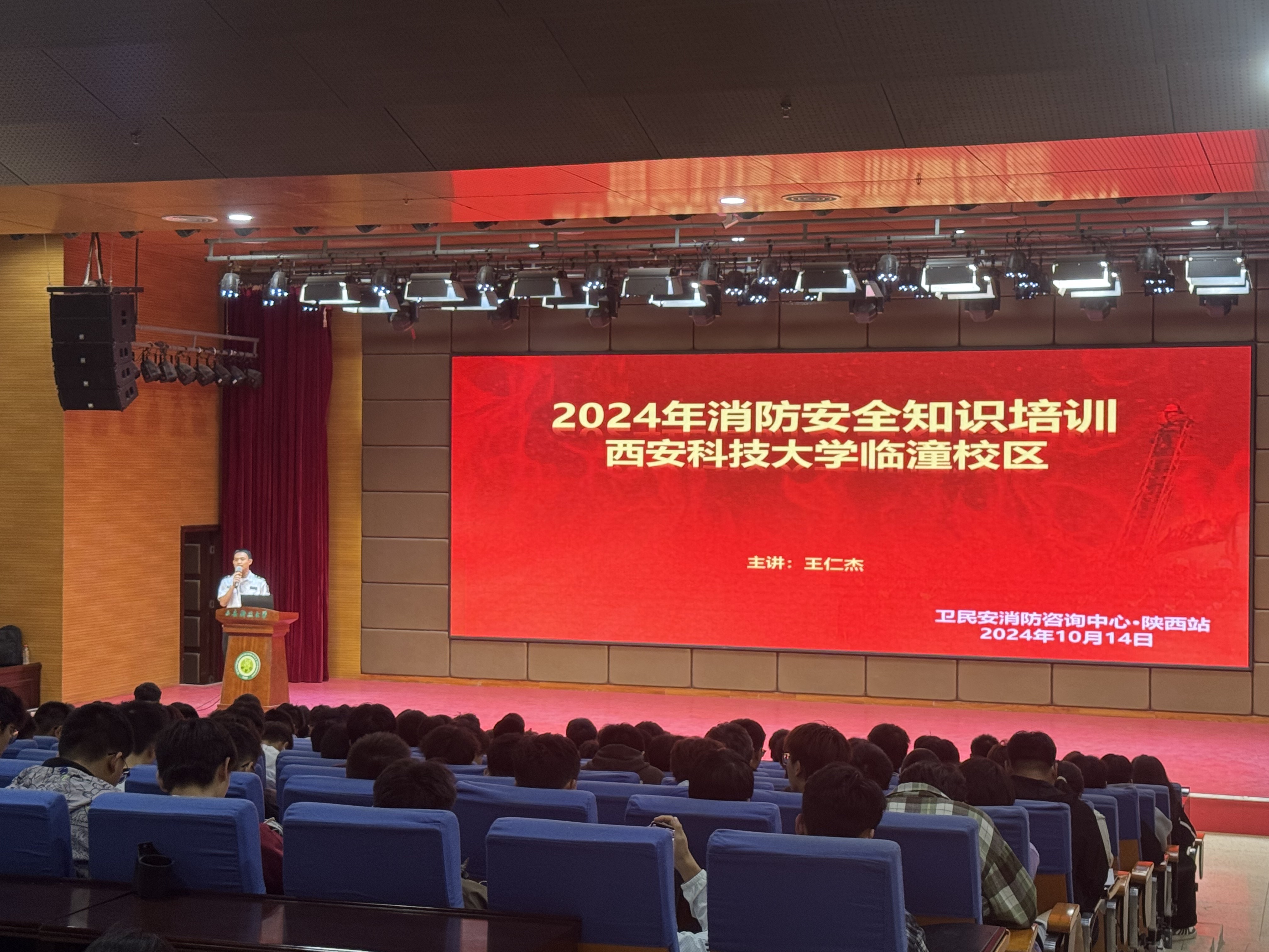 为进一步落实学校关于保障学生生活和校园安全稳定相关工作要求,切实加强校园消防安全教育,普及消防安全知识,提升学生消防安全防范意识和能力,10月14日晚,滚球买球的app官网于煤炭中心一楼报告厅组织开展消防安全专题讲座。北京卫民安消防宣教中心陕西站讲师王仁杰教官担任主讲,2024级全体本科生500余人及辅导员参加讲座。辅导员杨芝、巩凯主持活动。