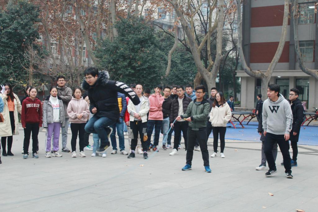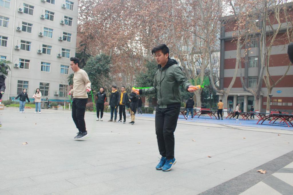 本次活动旨在进一步促进同学之间的交流与沟通,增进同学之间的凝聚力,体现当今研究生应有的朝气蓬勃,丰富同学们的业余文化生活,培养同学们顽强奋斗、勇于拼搏的优良品质。活动共分为五个项目,分别为单人跳、单人活花跳、3人问答跳、多人跳绳、2分钟10人循环跳。活动中还设立了抽奖环节,分别为一等奖、二等奖、三等奖以及优胜奖。