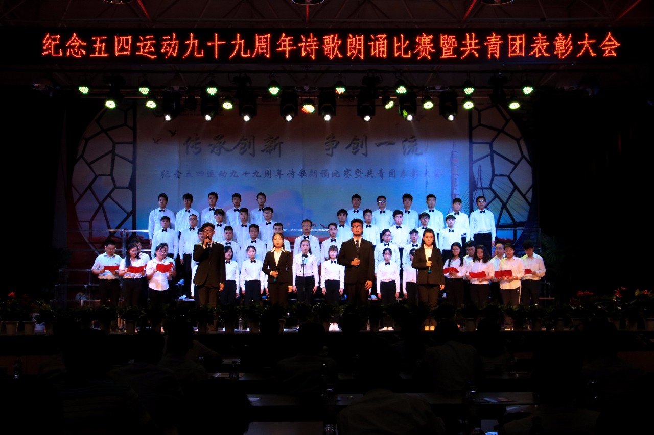 5月3日晚,滚球买球的app官网部分师生参加了由滚球买球的app官网学生会在二俱举办的滚球买球的app官网纪念五四运动九十九周年诗歌朗诵比赛暨共青团表彰大会,晚会以朗诵的形式带来了一场让人热血沸腾的视觉盛宴,令所有观众又置身于1919年青年走上街头英勇奋斗的那天。