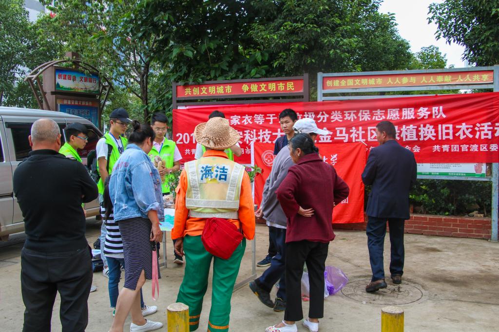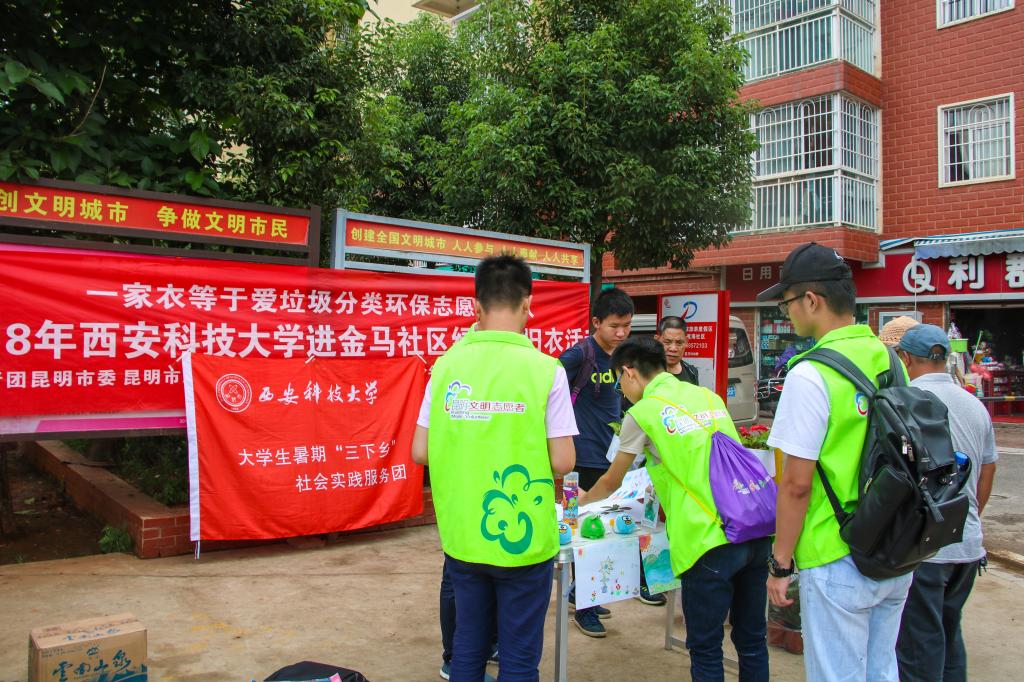 8月12日,滚球买球的app官网“绿色发展”社会实践调研团来到昆明市金家社区开展了主题为“环保进社区,绿在‘衣‘家‘一’”活动。这也是实践团队实现低碳环保经济,减少环境污染和践行“绿色发展”理念的系列活动之一。