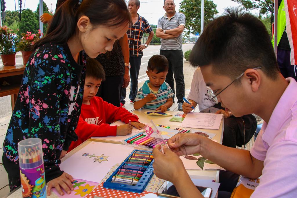 上午10时,小区居民有的抱着旧衣物,有的提着装满旧被套床单的袋子,早早就等待着捐衣服了。活动一开始,随着队员们和环保志愿者紧张有序地登记、收集旧衣物、兑换绿植,不到两个小时,52盆绿植便被兑换完了。期间,队员们还为社区小朋友们准备了画板、画笔以及废弃的饮料瓶,教他们画画的同时也宣传了环保知识,希望他们能够从小就树立起环保的意识,为国家的“绿色环保发展”贡献出自己的一份力量。